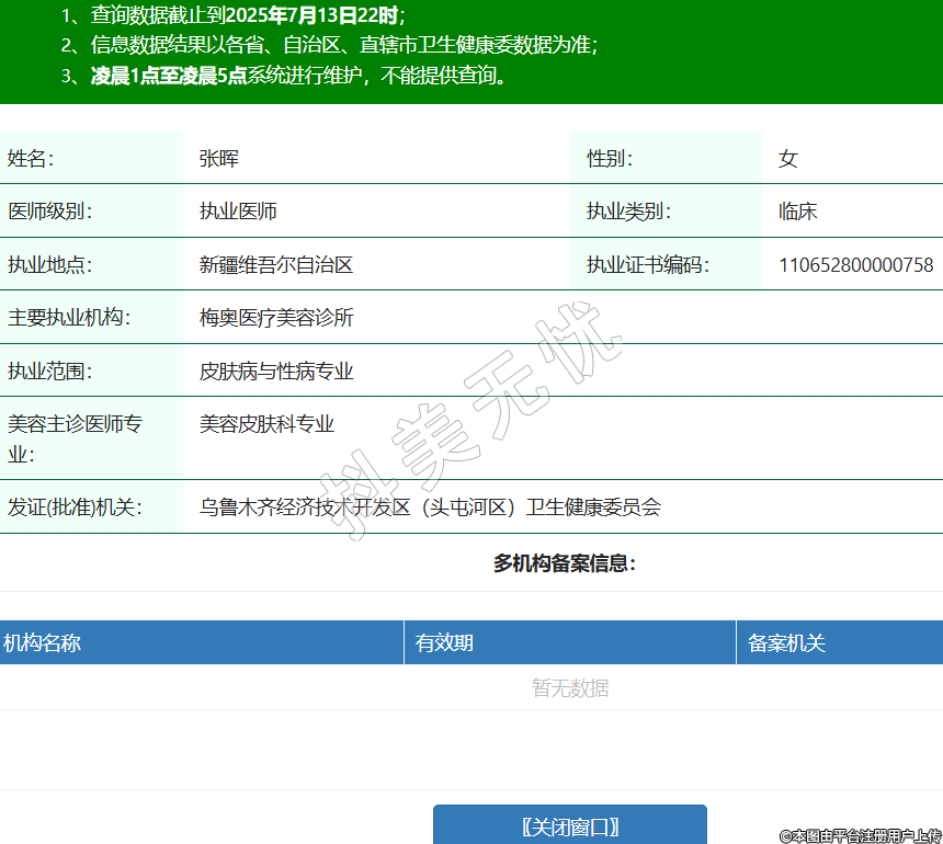 姓名:張暉性別:女醫(yī)師級別:執(zhí)業(yè)醫(yī)師執(zhí)業(yè)類別:臨床執(zhí)業(yè)地點:新疆維吾爾自治區(qū)執(zhí)業(yè)證書編碼:110652800000758主要執(zhí)業(yè)機構(gòu):梅奧醫(yī)療美容診所執(zhí)業(yè)范圍:皮膚病與性病專業(yè)美容主診醫(yī)師專業(yè):美容皮膚科專業(yè)發(fā)證(批準(zhǔn))機關(guān):烏魯木齊經(jīng)濟技術(shù)開發(fā)區(qū)(頭屯河區(qū))衛(wèi)生健康委員會