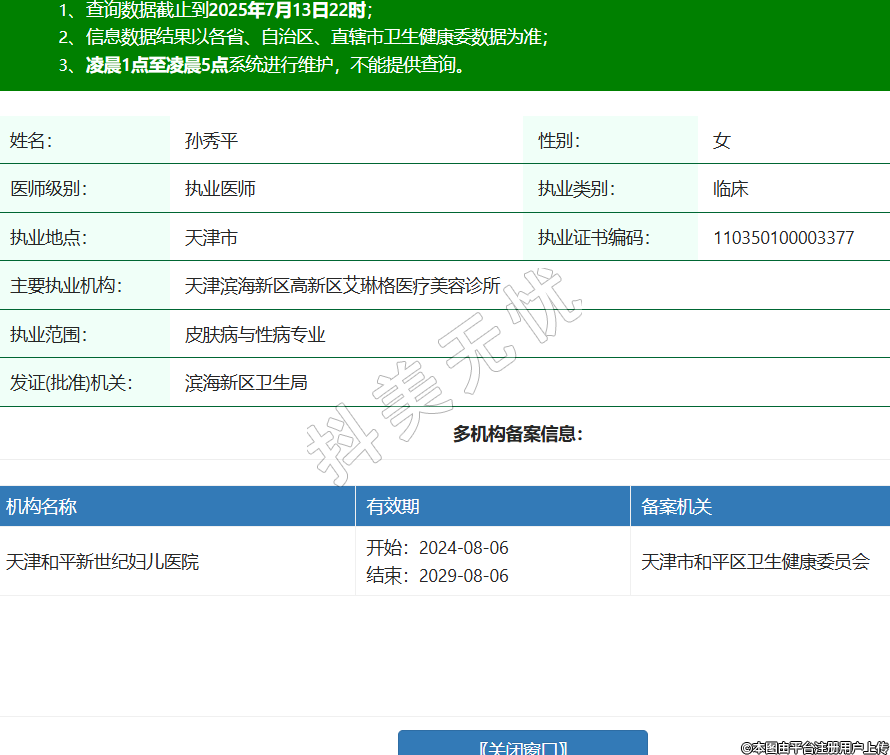 姓名:孫秀平性別:女醫(yī)師級別:執(zhí)業(yè)醫(yī)師執(zhí)業(yè)類別:臨床執(zhí)業(yè)地點:天津市執(zhí)業(yè)證書編碼:110350100003377主要執(zhí)業(yè)機(jī)構(gòu):天津濱海新區(qū)高新區(qū)艾琳格醫(yī)療美容診所執(zhí)業(yè)范圍:皮膚病與性病專業(yè)發(fā)證(批準(zhǔn))機(jī)關(guān):濱海新區(qū)衛(wèi)生局多機(jī)構(gòu)備案信息: