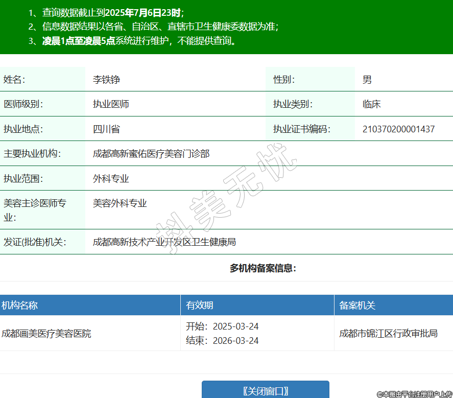 機構(gòu)名稱 有效期 備案機關(guān) 成都畫美醫(yī)療美容醫(yī)院 開始:2025-03-24結(jié)束:2026-03-24成都市錦江區(qū)行政審批局 -
