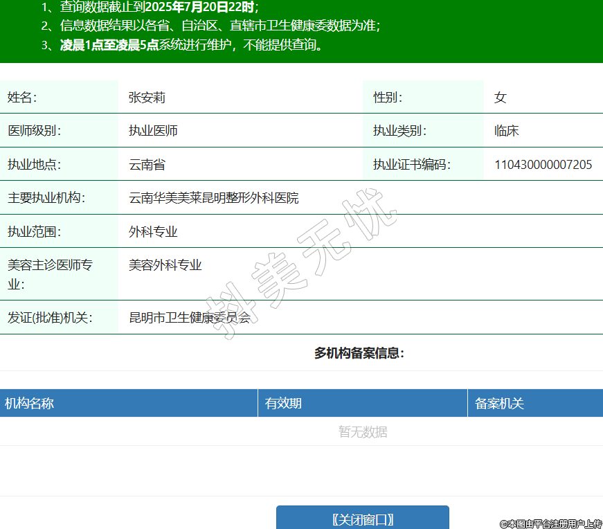 姓名:張安莉性別:女醫(yī)師級別:執(zhí)業(yè)醫(yī)師執(zhí)業(yè)類別:臨床執(zhí)業(yè)地點:云南省執(zhí)業(yè)證書編碼:110430000007205主要執(zhí)業(yè)機構(gòu):云南華美美萊昆明整形外科醫(yī)院執(zhí)業(yè)范圍:外科專業(yè)美容主診醫(yī)師專業(yè):美容外科專業(yè)發(fā)證(批準)機關(guān):昆明市衛(wèi)生健康委員會