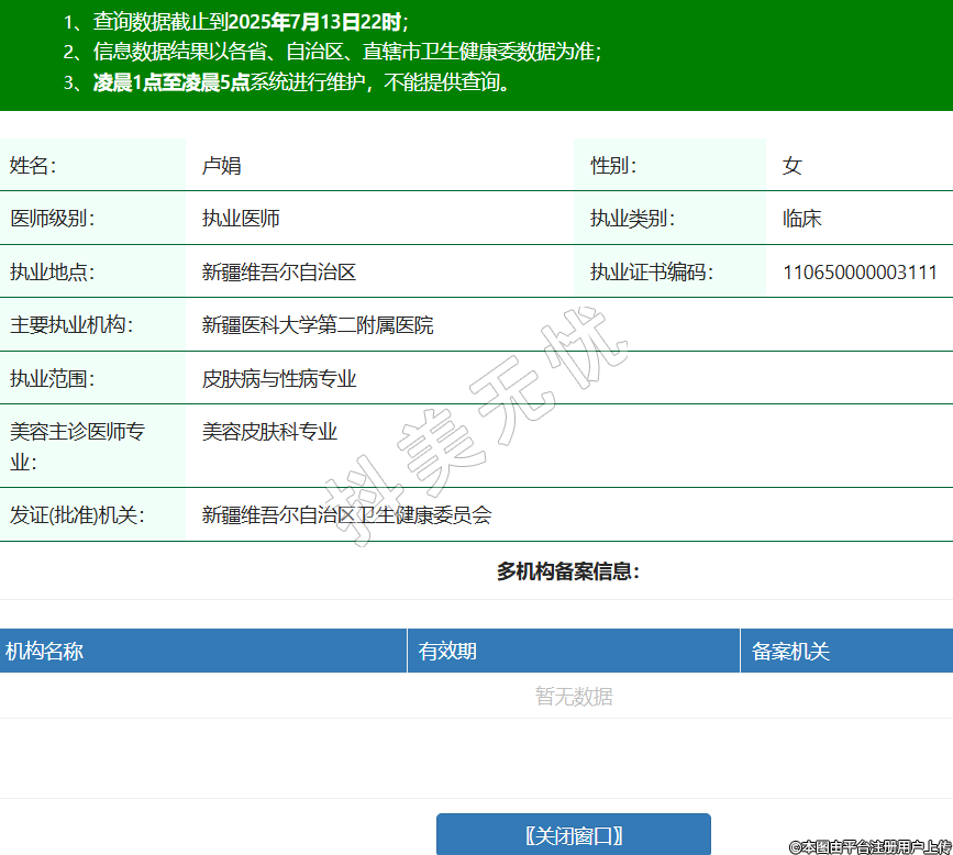 姓名:盧娟性別:女醫(yī)師級(jí)別:執(zhí)業(yè)醫(yī)師執(zhí)業(yè)類(lèi)別:臨床執(zhí)業(yè)地點(diǎn):新疆維吾爾自治區(qū)執(zhí)業(yè)證書(shū)編碼:110650000003111主要執(zhí)業(yè)機(jī)構(gòu):新疆醫(yī)科大學(xué)第二附屬醫(yī)院執(zhí)業(yè)范圍:皮膚病與性病專(zhuān)業(yè)美容主診醫(yī)師專(zhuān)業(yè):美容皮膚科專(zhuān)業(yè)發(fā)證(批準(zhǔn))機(jī)關(guān):新疆維吾爾自治區(qū)衛(wèi)生健康委員會(huì)