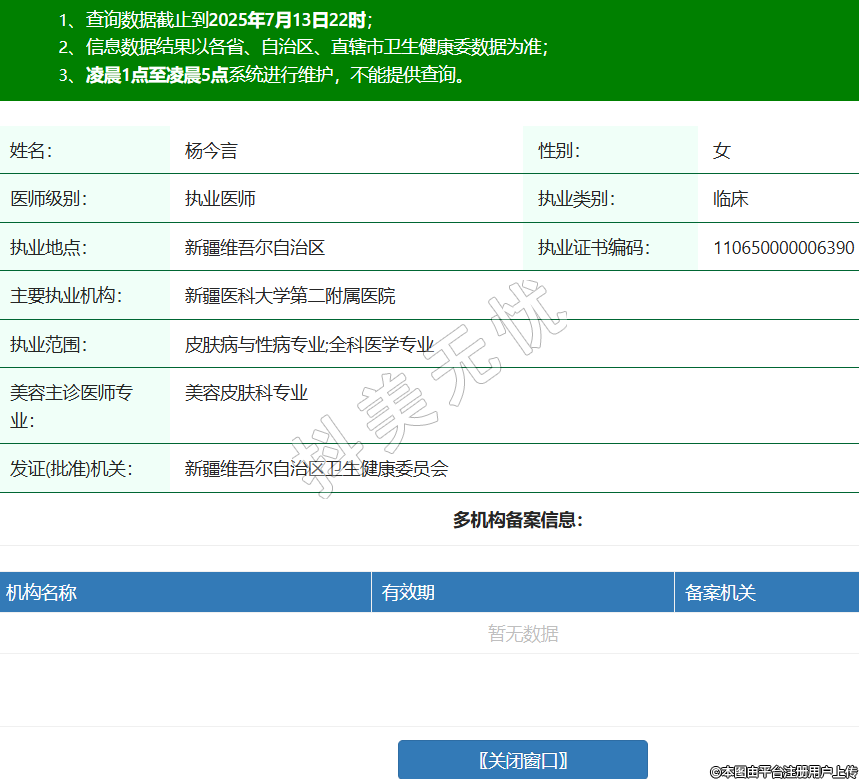 姓名:楊今言性別:女醫(yī)師級(jí)別:執(zhí)業(yè)醫(yī)師執(zhí)業(yè)類別:臨床執(zhí)業(yè)地點(diǎn):新疆維吾爾自治區(qū)執(zhí)業(yè)證書編碼:110650000006390主要執(zhí)業(yè)機(jī)構(gòu):新疆醫(yī)科大學(xué)第二附屬醫(yī)院執(zhí)業(yè)范圍:皮膚病與性病專業(yè);全科醫(yī)學(xué)專業(yè)美容主診醫(yī)師專業(yè):美容皮膚科專業(yè)發(fā)證(批準(zhǔn))機(jī)關(guān):新疆維吾爾自治區(qū)衛(wèi)生健康委員會(huì)