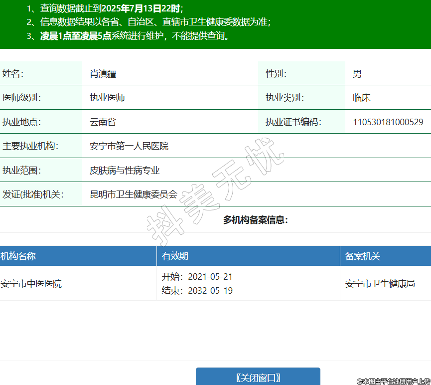 姓名:肖滇疆性別:男醫(yī)師級別:執(zhí)業(yè)醫(yī)師執(zhí)業(yè)類別:臨床執(zhí)業(yè)地點(diǎn):云南省執(zhí)業(yè)證書編碼:110530181000529主要執(zhí)業(yè)機(jī)構(gòu):安寧市第一人民醫(yī)院執(zhí)業(yè)范圍:皮膚病與性病專業(yè)發(fā)證(批準(zhǔn))機(jī)關(guān):昆明市衛(wèi)生健康委員會(huì)多機(jī)構(gòu)備案信息: