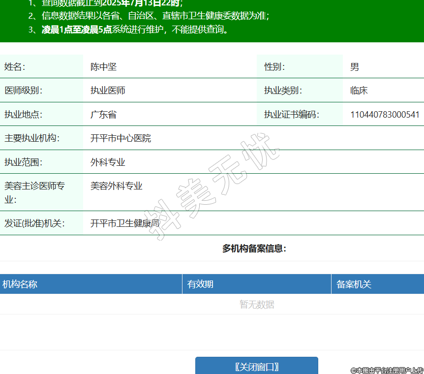 姓名:陳中堅(jiān)性別:男醫(yī)師級(jí)別:執(zhí)業(yè)醫(yī)師執(zhí)業(yè)類別:臨床執(zhí)業(yè)地點(diǎn):廣東省執(zhí)業(yè)證書編碼:110440783000541主要執(zhí)業(yè)機(jī)構(gòu):開(kāi)平市中心醫(yī)院執(zhí)業(yè)范圍:外科專業(yè)美容主診醫(yī)師專業(yè):美容外科專業(yè)發(fā)證(批準(zhǔn))機(jī)關(guān):開(kāi)平市衛(wèi)生健康局