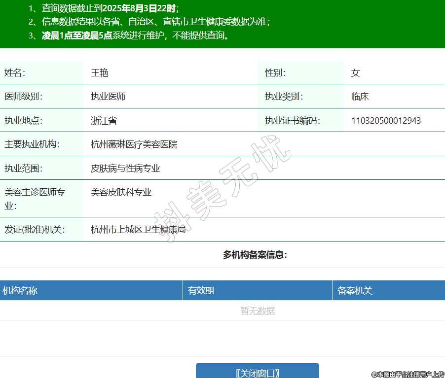 姓名:王艷性別:女醫(yī)師級(jí)別:執(zhí)業(yè)醫(yī)師執(zhí)業(yè)類別:臨床執(zhí)業(yè)地點(diǎn):浙江省執(zhí)業(yè)證書編碼:110320500012943主要執(zhí)業(yè)機(jī)構(gòu):杭州薇琳醫(yī)療美容醫(yī)院執(zhí)業(yè)范圍:皮膚病與性病專業(yè)美容主診醫(yī)師專業(yè):美容皮膚科專業(yè)發(fā)證(批準(zhǔn))機(jī)關(guān):杭州市上城區(qū)衛(wèi)生健康局