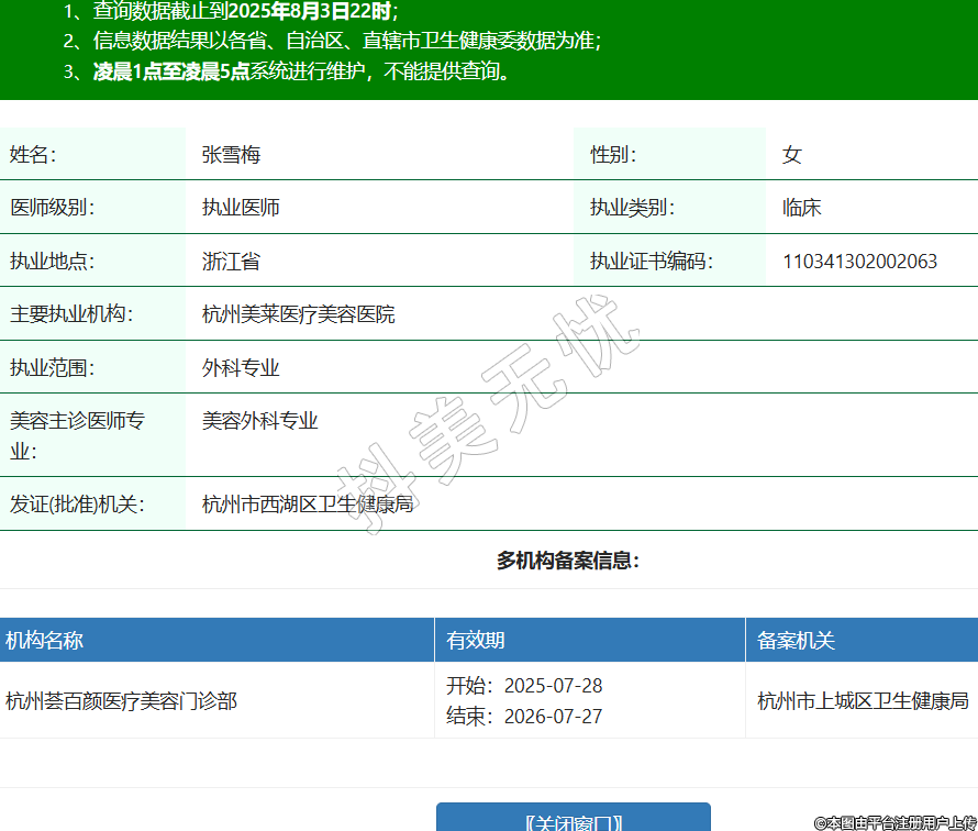 機(jī)構(gòu)名稱 有效期 備案機(jī)關(guān) 杭州薈百顏醫(yī)療美容門診部 開始:2025-07-28結(jié)束:2026-07-27杭州市上城區(qū)衛(wèi)生健康局 -
