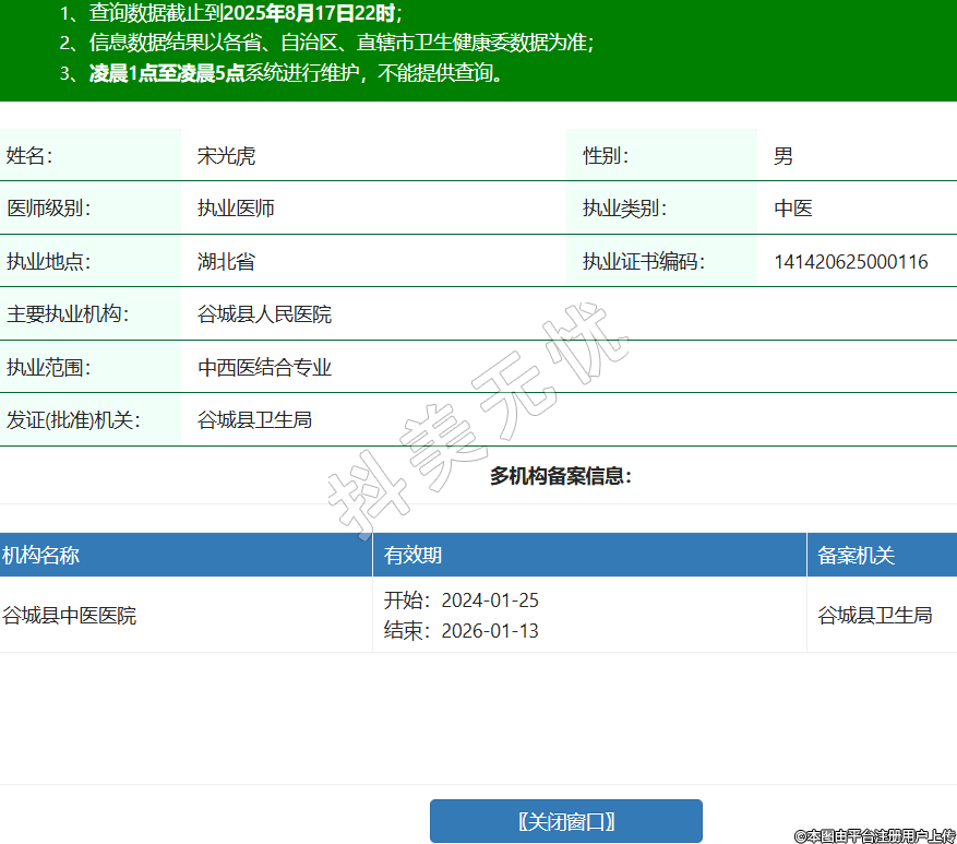 機(jī)構(gòu)名稱 有效期 備案機(jī)關(guān) 谷城縣中醫(yī)醫(yī)院 開始:2024-01-25結(jié)束:2026-01-13谷城縣衛(wèi)生局 -