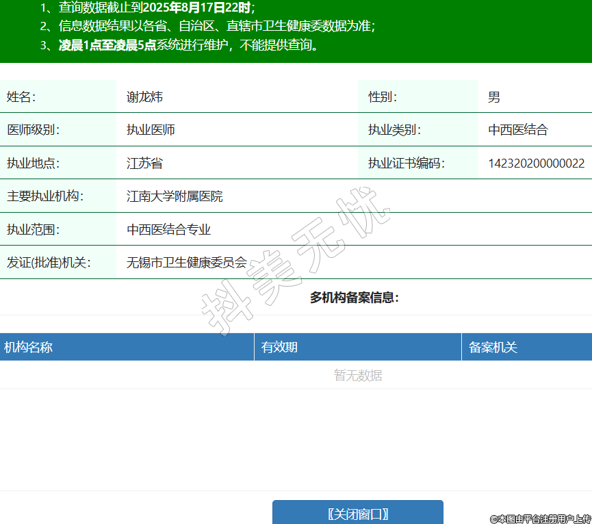 姓名:謝龍煒性別:男醫(yī)師級別:執(zhí)業(yè)醫(yī)師執(zhí)業(yè)類別:中西醫(yī)結(jié)合執(zhí)業(yè)地點:江蘇省執(zhí)業(yè)證書編碼:142320200000022主要執(zhí)業(yè)機(jī)構(gòu):江南大學(xué)附屬醫(yī)院執(zhí)業(yè)范圍:中西醫(yī)結(jié)合專業(yè)發(fā)證(批準(zhǔn))機(jī)關(guān):無錫市衛(wèi)生健康委員會