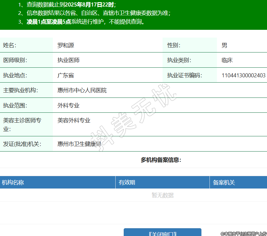 姓名:羅和源性別:男醫(yī)師級別:執(zhí)業(yè)醫(yī)師執(zhí)業(yè)類別:臨床執(zhí)業(yè)地點(diǎn):廣東省執(zhí)業(yè)證書編碼:110441300002403主要執(zhí)業(yè)機(jī)構(gòu):惠州市中心人民醫(yī)院執(zhí)業(yè)范圍:外科專業(yè)美容主診醫(yī)師專業(yè):美容外科專業(yè)發(fā)證(批準(zhǔn))機(jī)關(guān):惠州市衛(wèi)生健康局