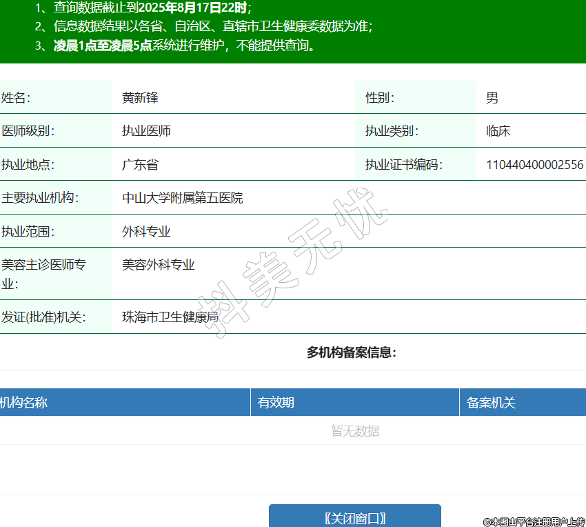 姓名:黃新鋒性別:男醫(yī)師級別:執(zhí)業(yè)醫(yī)師執(zhí)業(yè)類別:臨床執(zhí)業(yè)地點:廣東省執(zhí)業(yè)證書編碼:110440400002556主要執(zhí)業(yè)機構(gòu):中山大學(xué)附屬第五醫(yī)院執(zhí)業(yè)范圍:外科專業(yè)美容主診醫(yī)師專業(yè):美容外科專業(yè)發(fā)證(批準(zhǔn))機關(guān):珠海市衛(wèi)生健康局