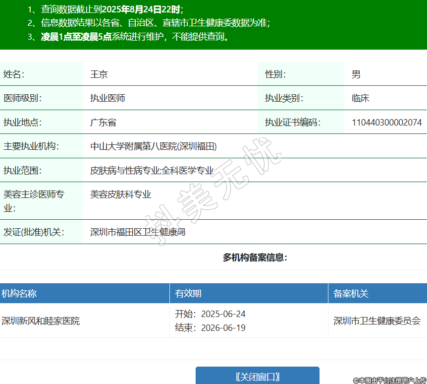 姓名:王京性別:男醫(yī)師級(jí)別:執(zhí)業(yè)醫(yī)師執(zhí)業(yè)類(lèi)別:臨床執(zhí)業(yè)地點(diǎn):廣東省執(zhí)業(yè)證書(shū)編碼:110440300002074主要執(zhí)業(yè)機(jī)構(gòu):中山大學(xué)附屬第八醫(yī)院(深圳福田)執(zhí)業(yè)范圍:皮膚病與性病專(zhuān)業(yè);全科醫(yī)學(xué)專(zhuān)業(yè)美容主診醫(yī)師專(zhuān)業(yè):美容皮膚科專(zhuān)業(yè)發(fā)證(批準(zhǔn))機(jī)關(guān):深圳市福田區(qū)衛(wèi)生健康局多機(jī)構(gòu)備案信息: