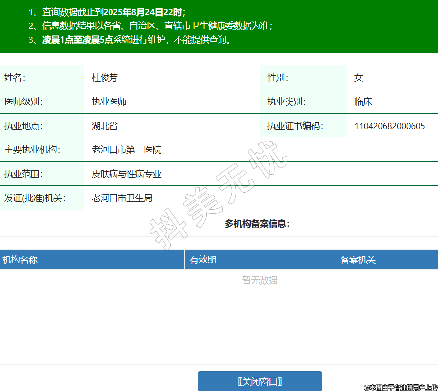 姓名:杜俊芳性別:女醫(yī)師級別:執(zhí)業(yè)醫(yī)師執(zhí)業(yè)類別:臨床執(zhí)業(yè)地點(diǎn):湖北省執(zhí)業(yè)證書編碼:110420682000605主要執(zhí)業(yè)機(jī)構(gòu):老河口市第一醫(yī)院執(zhí)業(yè)范圍:皮膚病與性病專業(yè)發(fā)證(批準(zhǔn))機(jī)關(guān):老河口市衛(wèi)生局