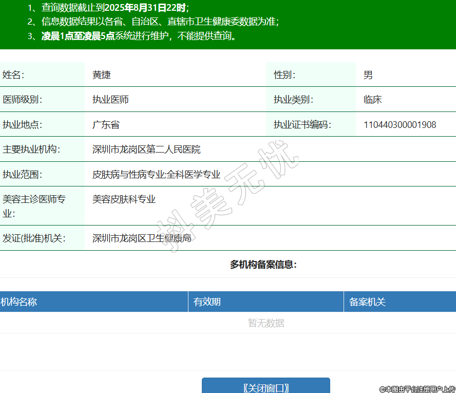 姓名:黃捷性別:男醫(yī)師級別:執(zhí)業(yè)醫(yī)師執(zhí)業(yè)類別:臨床執(zhí)業(yè)地點(diǎn):廣東省執(zhí)業(yè)證書編碼:110440300001908主要執(zhí)業(yè)機(jī)構(gòu):深圳市龍崗區(qū)第二人民醫(yī)院執(zhí)業(yè)范圍:皮膚病與性病專業(yè);全科醫(yī)學(xué)專業(yè)美容主診醫(yī)師專業(yè):美容皮膚科專業(yè)發(fā)證(批準(zhǔn))機(jī)關(guān):深圳市龍崗區(qū)衛(wèi)生健康局