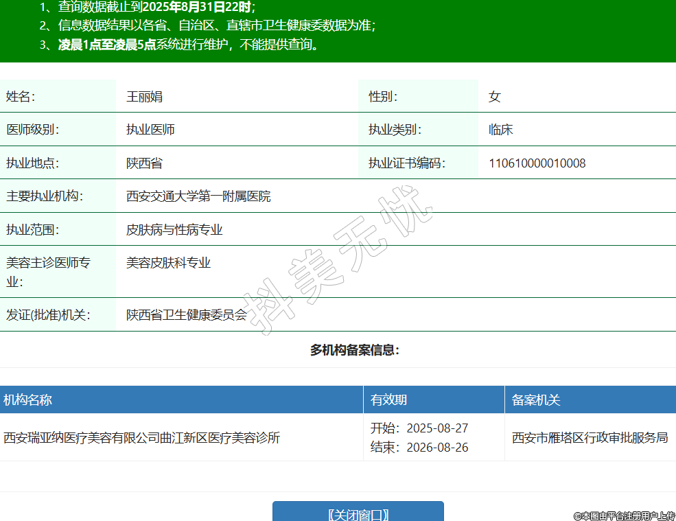 機構名稱 有效期 備案機關 西安瑞亞納醫(yī)療美容有限公司曲江新區(qū)醫(yī)療美容診所 開始:2025-08-27結束:2026-08-26西安市雁塔區(qū)行政審批服務局 -