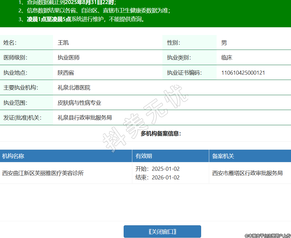 機(jī)構(gòu)名稱 有效期 備案機(jī)關(guān) 西安曲江新區(qū)芙麗雅醫(yī)療美容診所 開始:2025-01-02結(jié)束:2026-01-02西安市雁塔區(qū)行政審批服務(wù)局 -