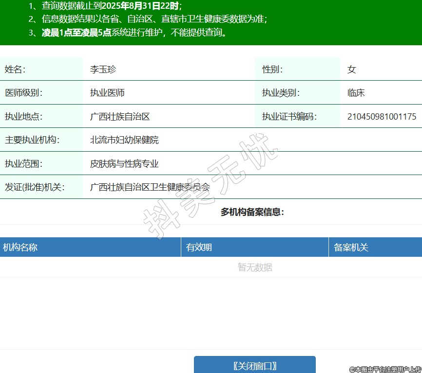 姓名:李玉珍性別:女醫(yī)師級別:執(zhí)業(yè)醫(yī)師執(zhí)業(yè)類別:臨床執(zhí)業(yè)地點:廣西壯族自治區(qū)執(zhí)業(yè)證書編碼:210450981001175主要執(zhí)業(yè)機(jī)構(gòu):北流市婦幼保健院執(zhí)業(yè)范圍:皮膚病與性病專業(yè)發(fā)證(批準(zhǔn))機(jī)關(guān):廣西壯族自治區(qū)衛(wèi)生健康委員會