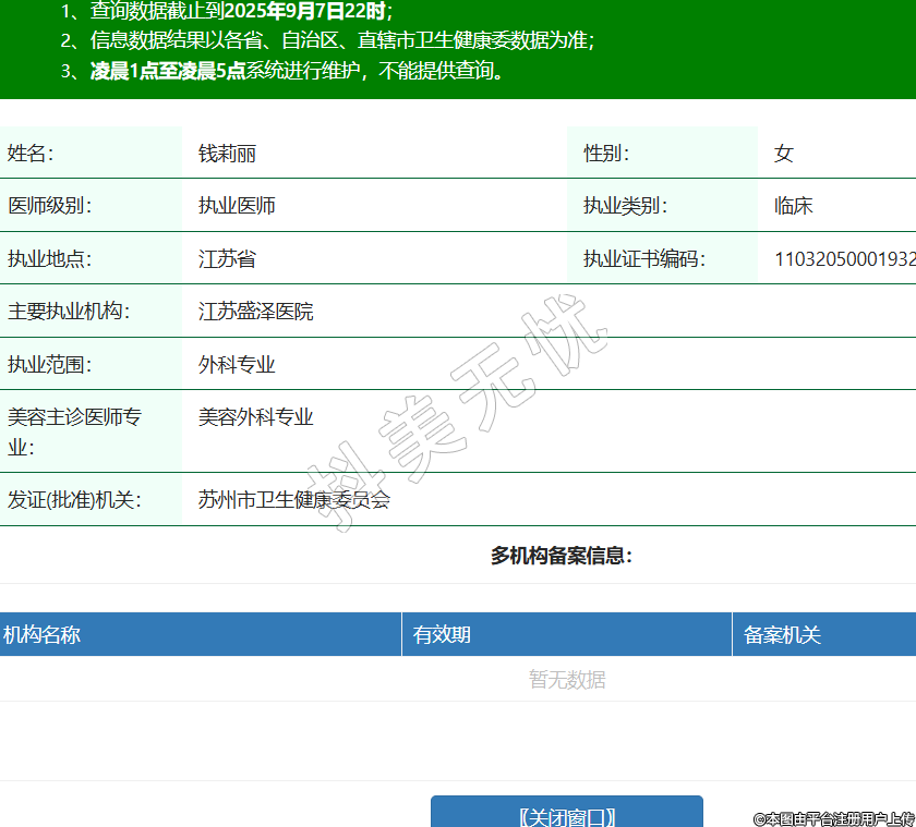 姓名:錢莉麗性別:女醫(yī)師級(jí)別:執(zhí)業(yè)醫(yī)師執(zhí)業(yè)類別:臨床執(zhí)業(yè)地點(diǎn):江蘇省執(zhí)業(yè)證書(shū)編碼:110320500019323主要執(zhí)業(yè)機(jī)構(gòu):江蘇盛澤醫(yī)院執(zhí)業(yè)范圍:外科專業(yè)美容主診醫(yī)師專業(yè):美容外科專業(yè)發(fā)證(批準(zhǔn))機(jī)關(guān):蘇州市衛(wèi)生健康委員會(huì)