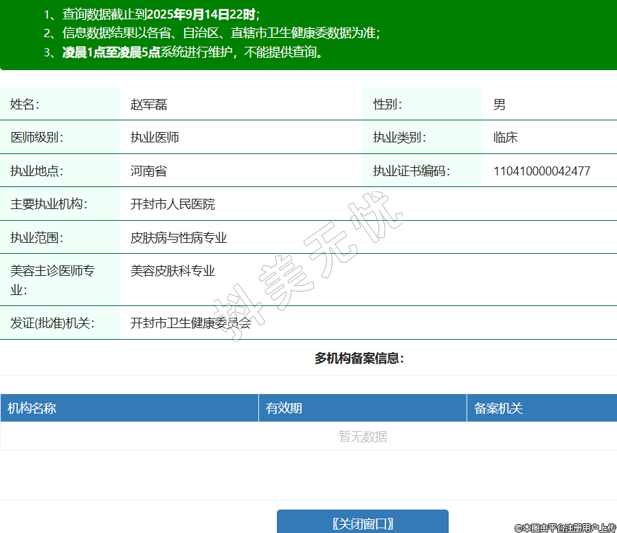 姓名:趙軍磊性別:男醫(yī)師級別:執(zhí)業(yè)醫(yī)師執(zhí)業(yè)類別:臨床執(zhí)業(yè)地點:河南省執(zhí)業(yè)證書編碼:110410000042477主要執(zhí)業(yè)機(jī)構(gòu):開封市人民醫(yī)院執(zhí)業(yè)范圍:皮膚病與性病專業(yè)美容主診醫(yī)師專業(yè):美容皮膚科專業(yè)發(fā)證(批準(zhǔn))機(jī)關(guān):開封市衛(wèi)生健康委員會