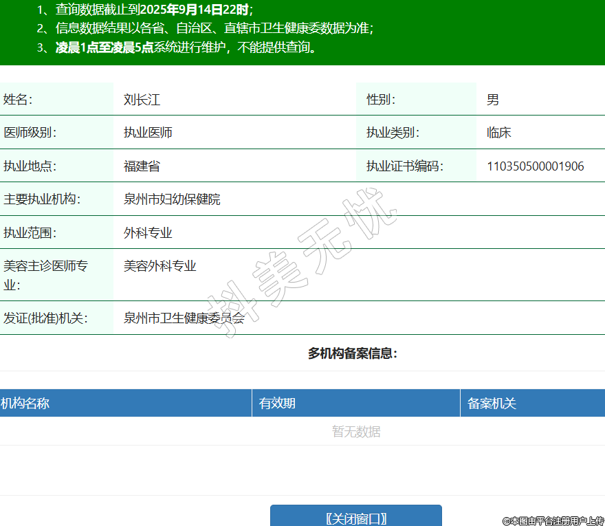姓名:劉長江性別:男醫(yī)師級別:執(zhí)業(yè)醫(yī)師執(zhí)業(yè)類別:臨床執(zhí)業(yè)地點(diǎn):福建省執(zhí)業(yè)證書編碼:110350500001906主要執(zhí)業(yè)機(jī)構(gòu):泉州市婦幼保健院執(zhí)業(yè)范圍:外科專業(yè)美容主診醫(yī)師專業(yè):美容外科專業(yè)發(fā)證(批準(zhǔn))機(jī)關(guān):泉州市衛(wèi)生健康委員會