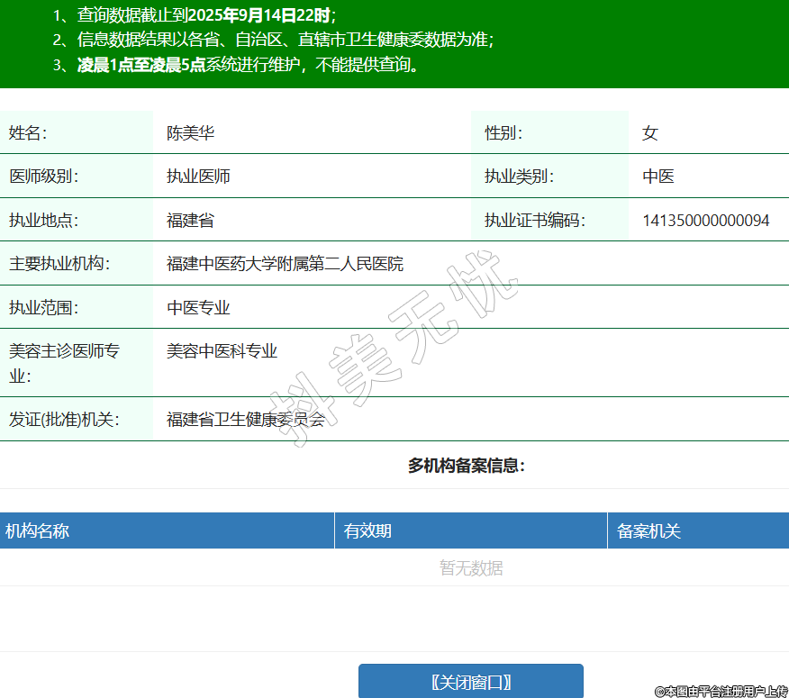 姓名:陳美華性別:女醫(yī)師級別:執(zhí)業(yè)醫(yī)師執(zhí)業(yè)類別:中醫(yī)執(zhí)業(yè)地點:福建省執(zhí)業(yè)證書編碼:141350000000094主要執(zhí)業(yè)機構:福建中醫(yī)藥大學附屬第二人民醫(yī)院執(zhí)業(yè)范圍:中醫(yī)專業(yè)美容主診醫(yī)師專業(yè):美容中醫(yī)科專業(yè)發(fā)證(批準)機關:福建省衛(wèi)生健康委員會