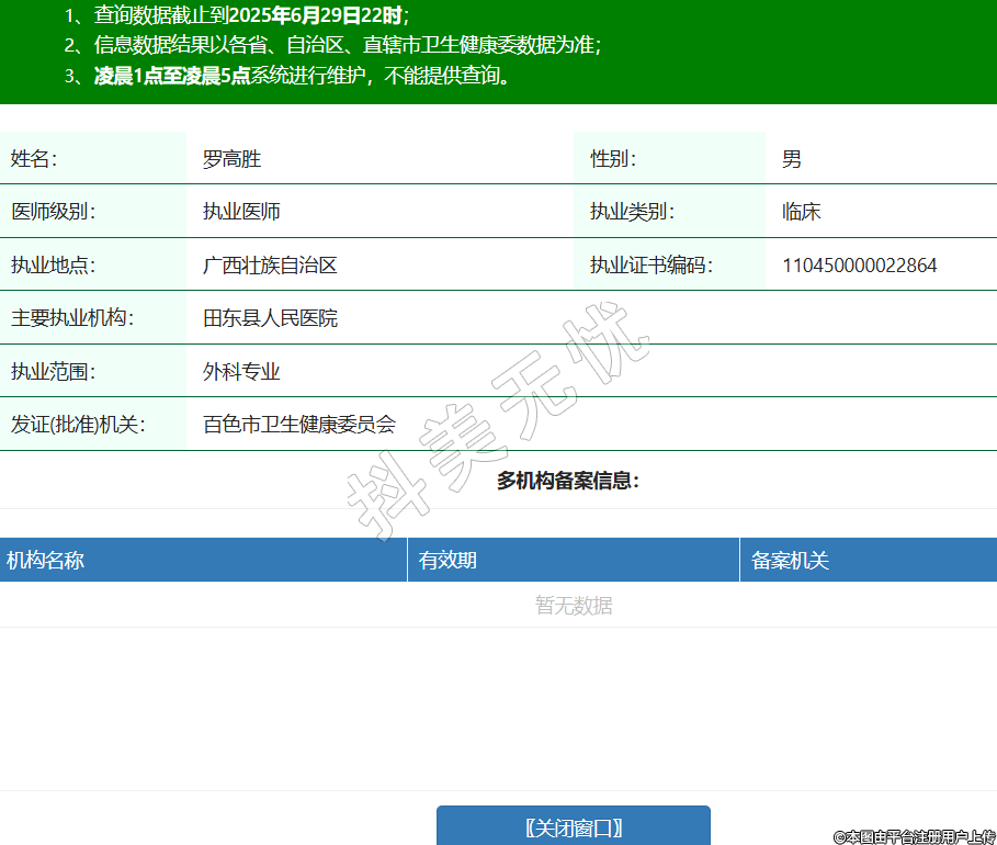 姓名:羅高勝性別:男醫(yī)師級別:執(zhí)業(yè)醫(yī)師執(zhí)業(yè)類別:臨床執(zhí)業(yè)地點:廣西壯族自治區(qū)執(zhí)業(yè)證書編碼:110450000022864主要執(zhí)業(yè)機構(gòu):田東縣人民醫(yī)院執(zhí)業(yè)范圍:外科專業(yè)發(fā)證(批準)機關(guān):百色市衛(wèi)生健康委員會