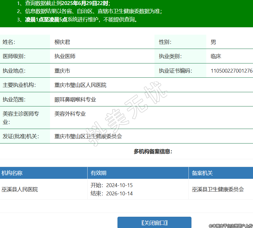 姓名:柳慶君性別:男醫(yī)師級(jí)別:執(zhí)業(yè)醫(yī)師執(zhí)業(yè)類別:臨床執(zhí)業(yè)地點(diǎn):重慶市執(zhí)業(yè)證書編碼:110500227001276主要執(zhí)業(yè)機(jī)構(gòu):重慶市璧山區(qū)人民醫(yī)院執(zhí)業(yè)范圍:眼耳鼻咽喉科專業(yè)美容主診醫(yī)師專業(yè):美容外科專業(yè)發(fā)證(批準(zhǔn))機(jī)關(guān):重慶市璧山區(qū)衛(wèi)生健康委員會(huì)多機(jī)構(gòu)備案信息: