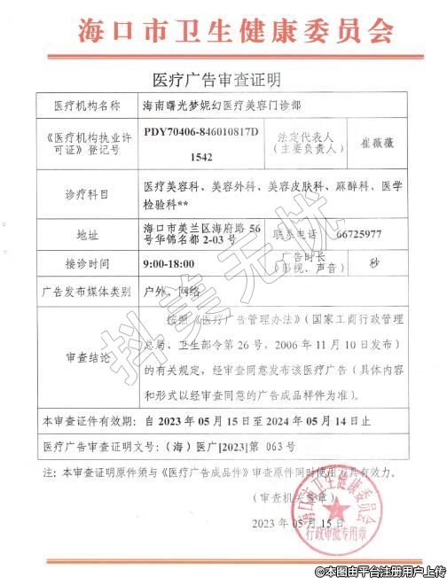 機(jī)構(gòu)名稱(chēng):海南曙光夢(mèng)妮幻醫(yī)療美容門(mén)診部
