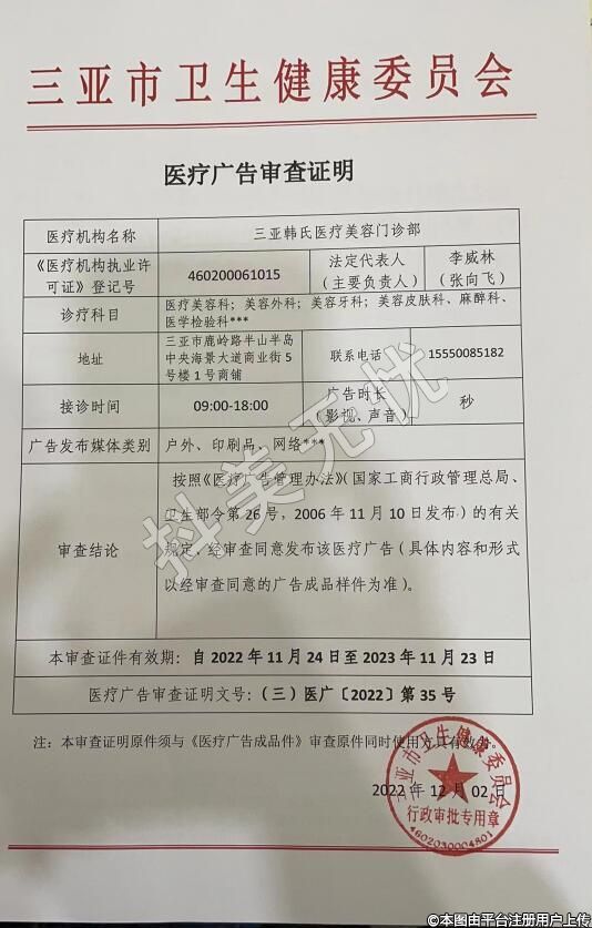 機(jī)構(gòu)名稱:三亞韓氏醫(yī)療美容門診部