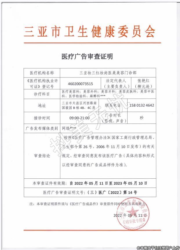 機(jī)構(gòu)名稱:三亞妝三紅妝尚醫(yī)療美容門診部