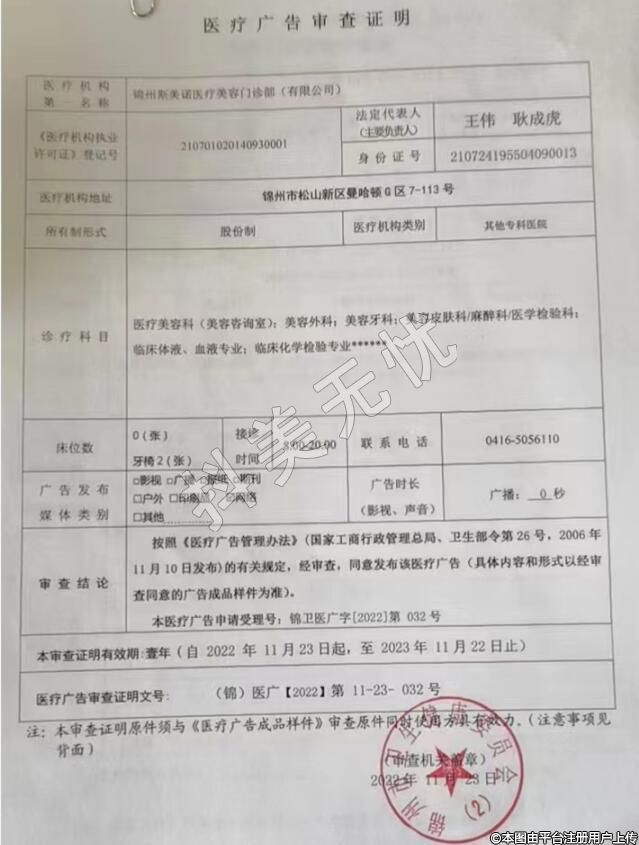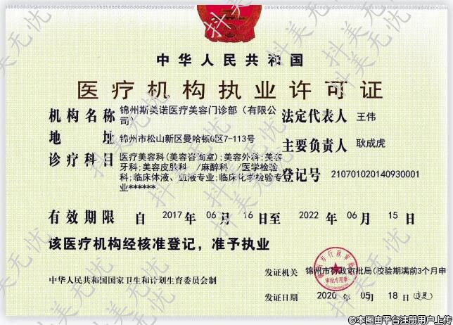 機(jī)構(gòu)名稱:錦州斯美諾醫(yī)療美容門診部(有限公司)