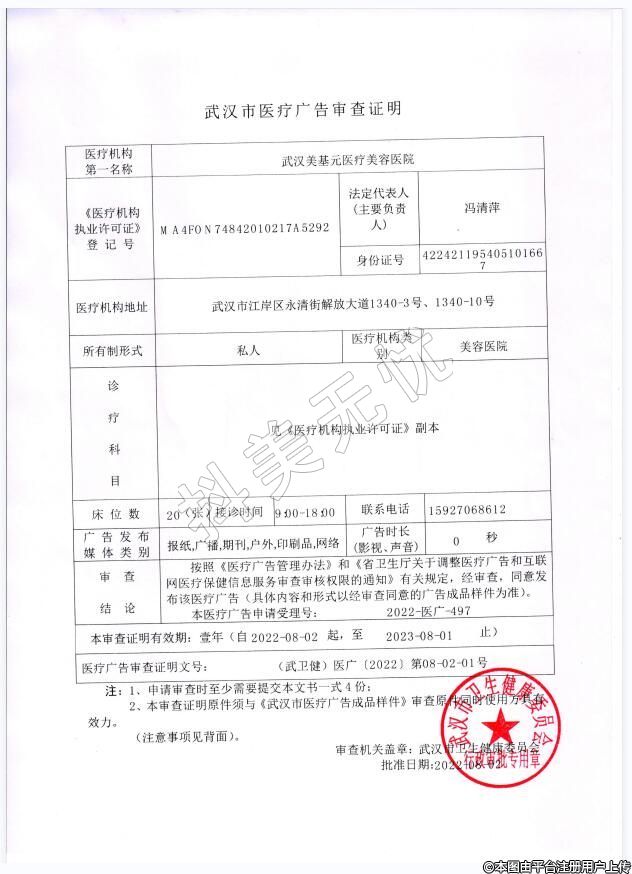 醫(yī)療機(jī)構(gòu)名稱:武漢美基元醫(yī)療美容醫(yī)院