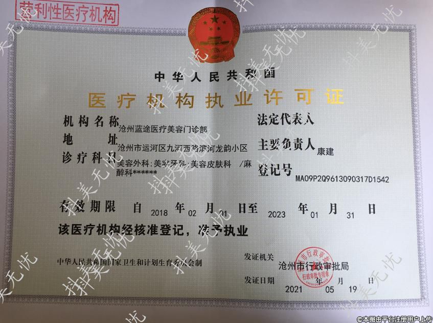 機構(gòu)名稱:滄州藍(lán)途醫(yī)療美容門診部