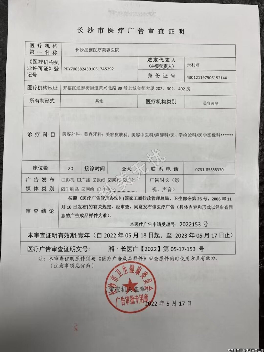 發(fā)證機(jī)關(guān):長(zhǎng)沙市衛(wèi)生健康委員會(huì)