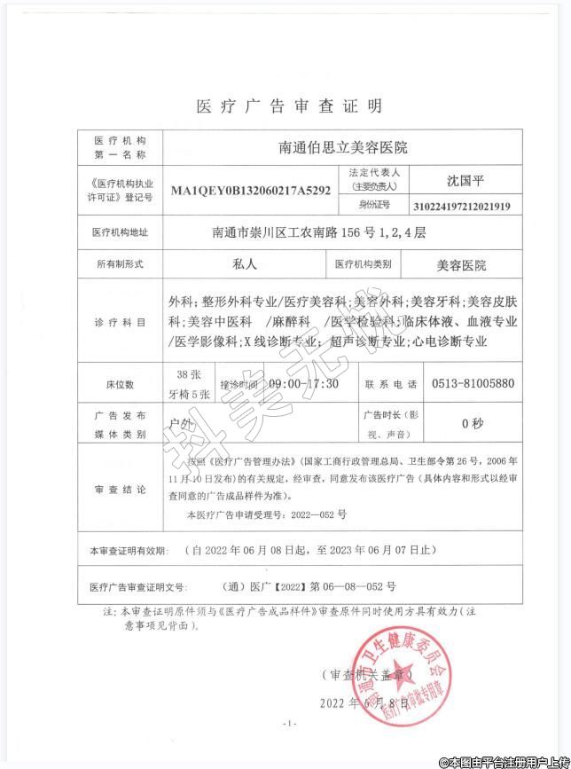 醫(yī)療機(jī)構(gòu)名稱:南通伯思立美容醫(yī)院