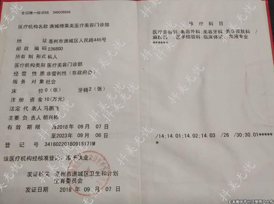 醫(yī)療機(jī)構(gòu)名稱:譙城締萊美醫(yī)療美容門診部