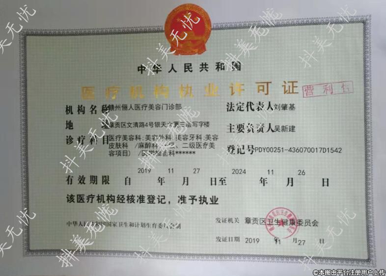 機構名稱:贛州儷人醫(yī)療美容門診部