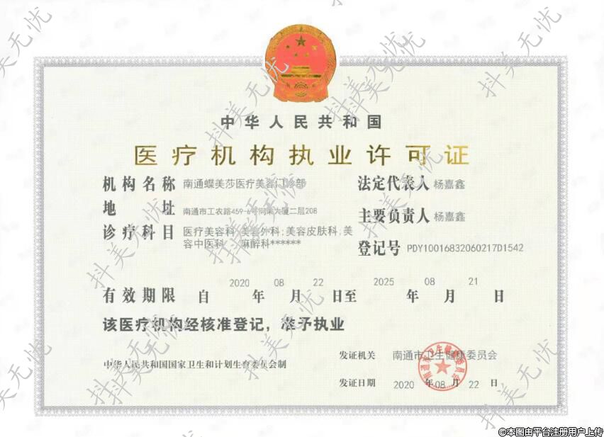 機(jī)構(gòu)名稱:南通蝶美莎醫(yī)療美容門(mén)診部