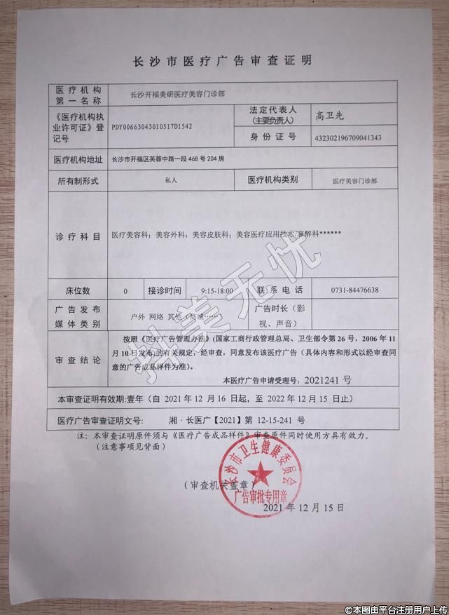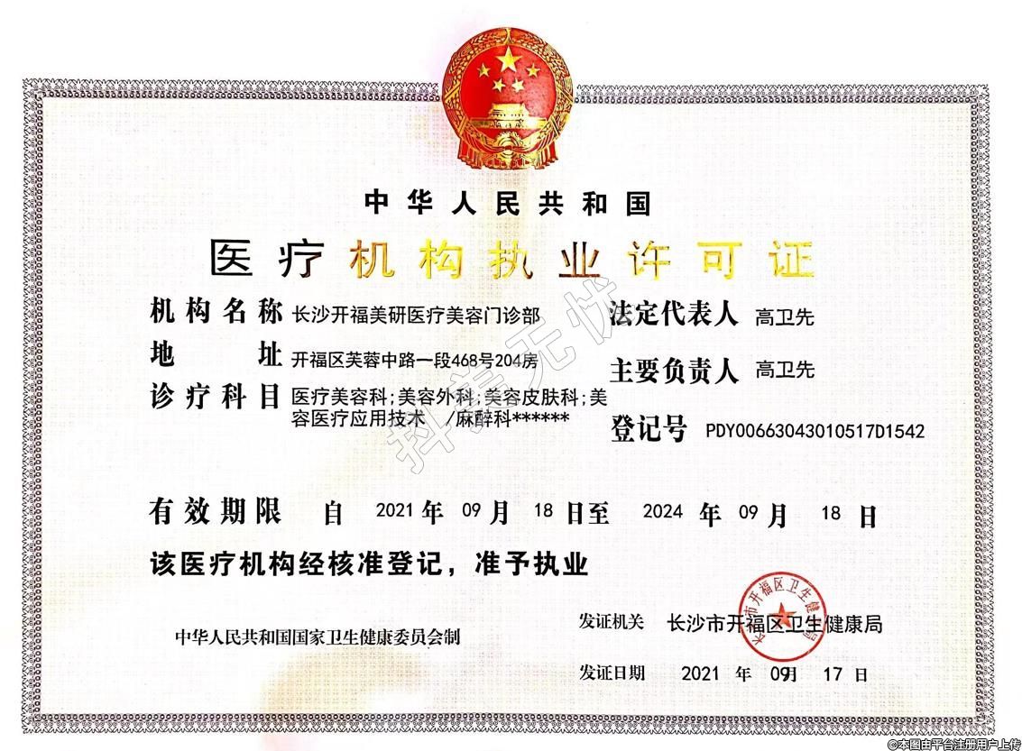 發(fā)證機關:長沙市開福區(qū)衛(wèi)生健康局