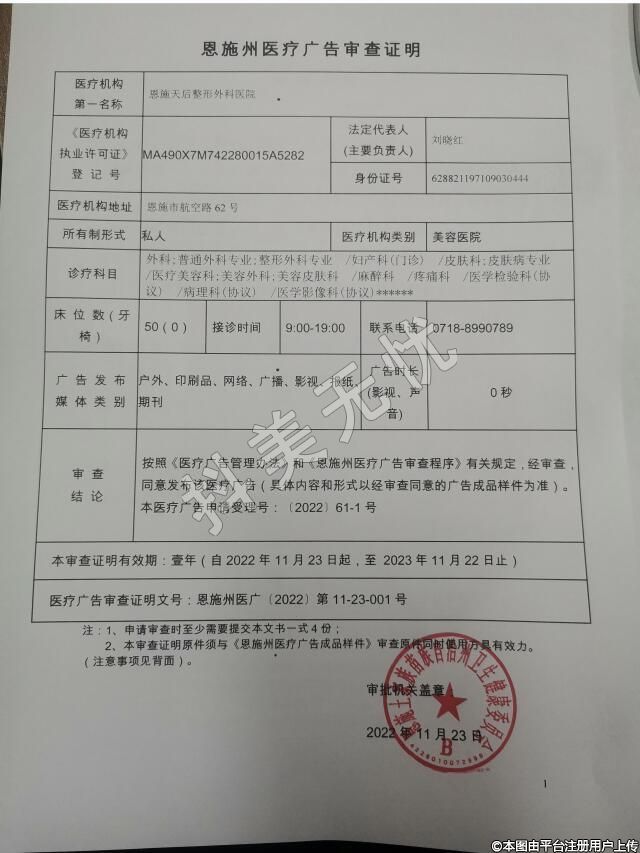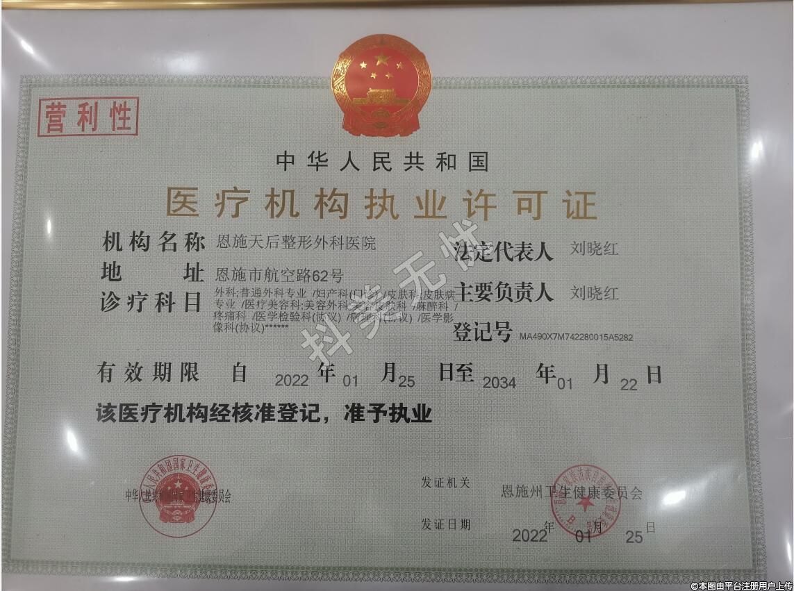機(jī)構(gòu)名稱(chēng):恩施天后整形外科醫(yī)院