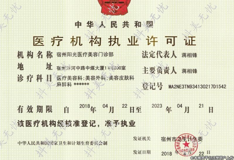 機構(gòu)名稱:宿州陽光醫(yī)療美容門診部