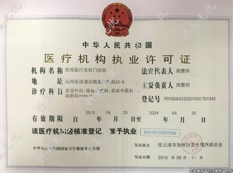 發(fā)證機關:連云港市海州區(qū)衛(wèi)生健康委員會