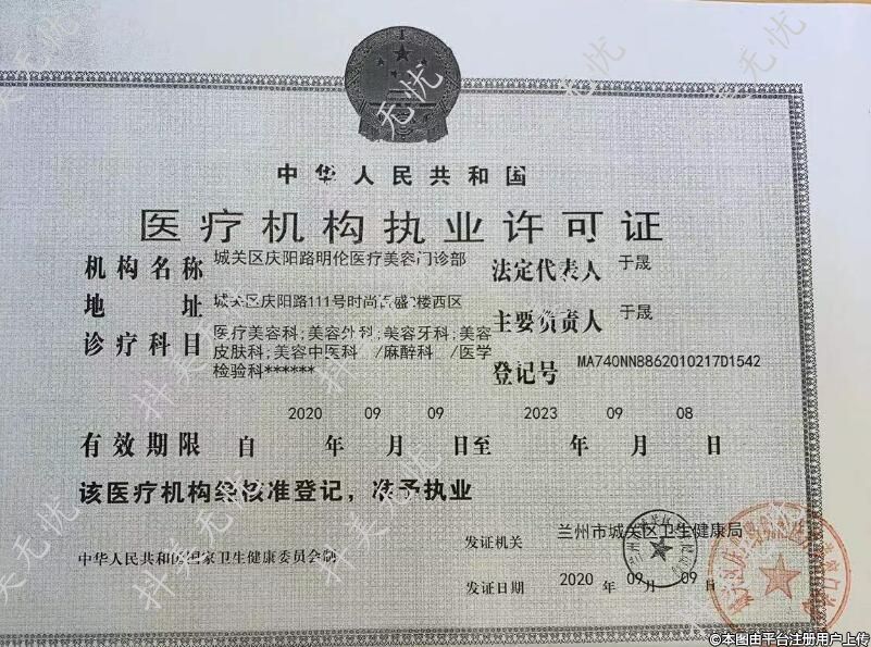 機(jī)構(gòu)名稱:城關(guān)區(qū)慶陽路明倫醫(yī)療美容門診部