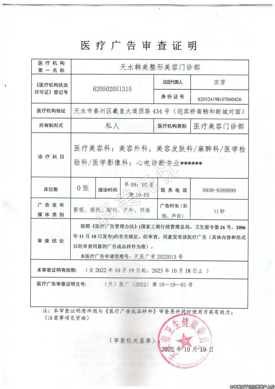 機(jī)構(gòu)名稱:天水韓美整形美容門診部