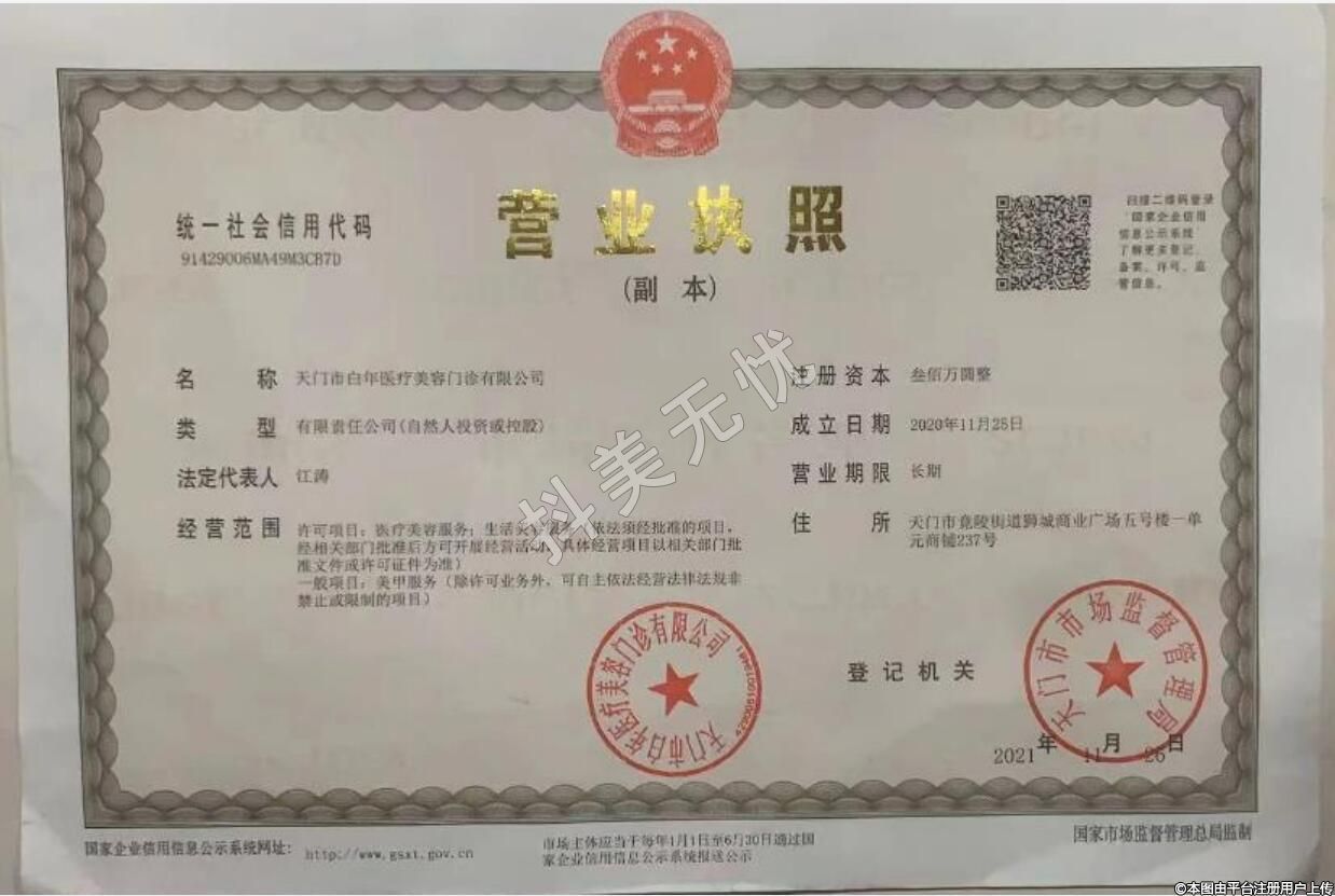 機(jī)構(gòu)名稱(chēng):天門(mén)市白年醫(yī)療美容門(mén)診