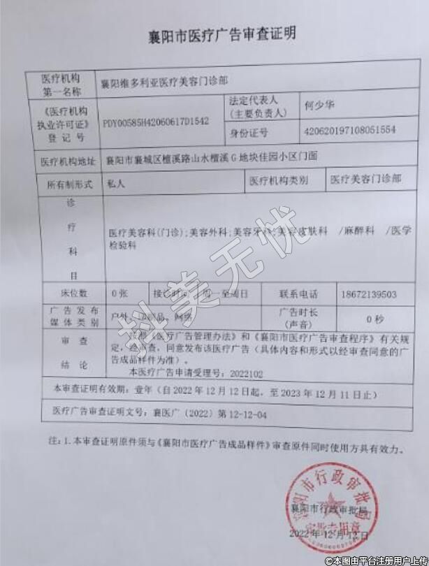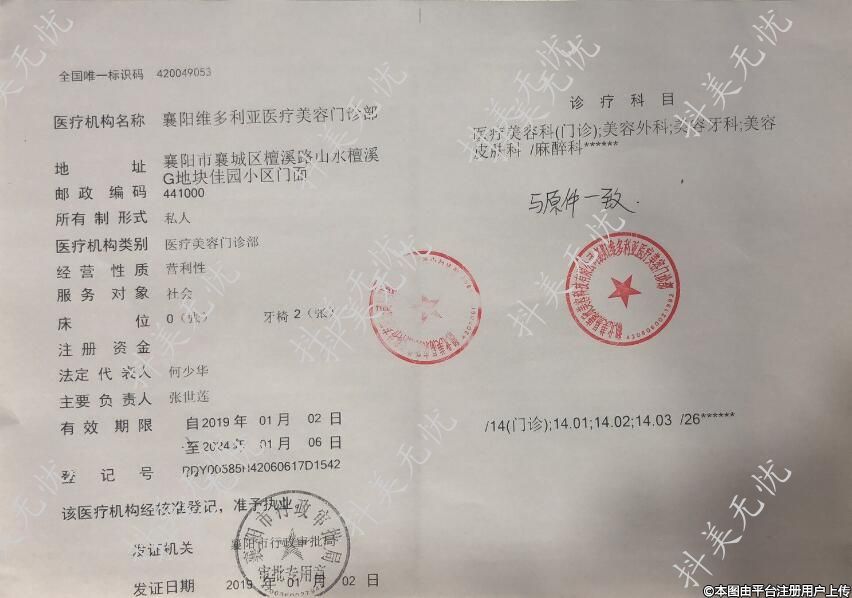 醫(yī)療機(jī)構(gòu)名稱:襄陽(yáng)維多利亞醫(yī)療美容門(mén)診部