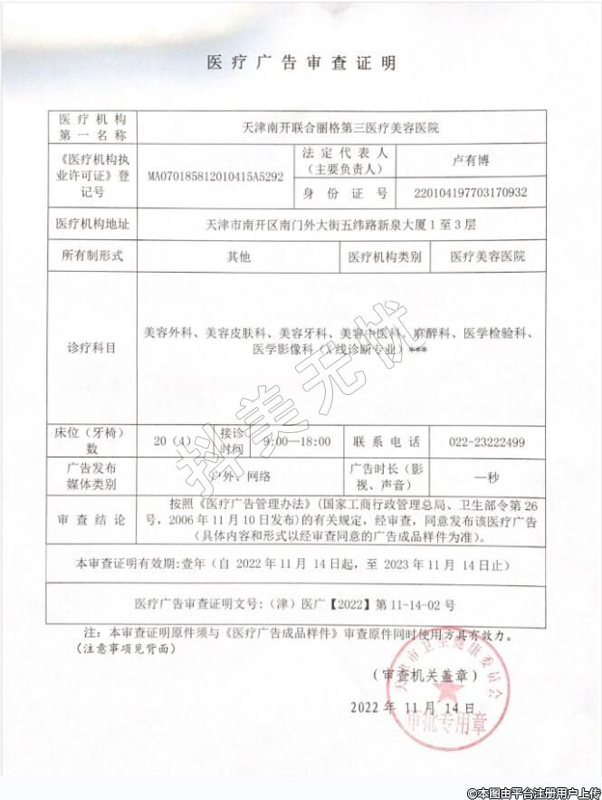 機(jī)構(gòu)名稱:天津南開聯(lián)合麗格第三醫(yī)療美容醫(yī)院