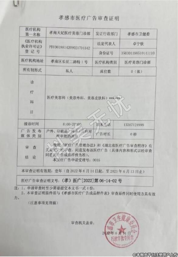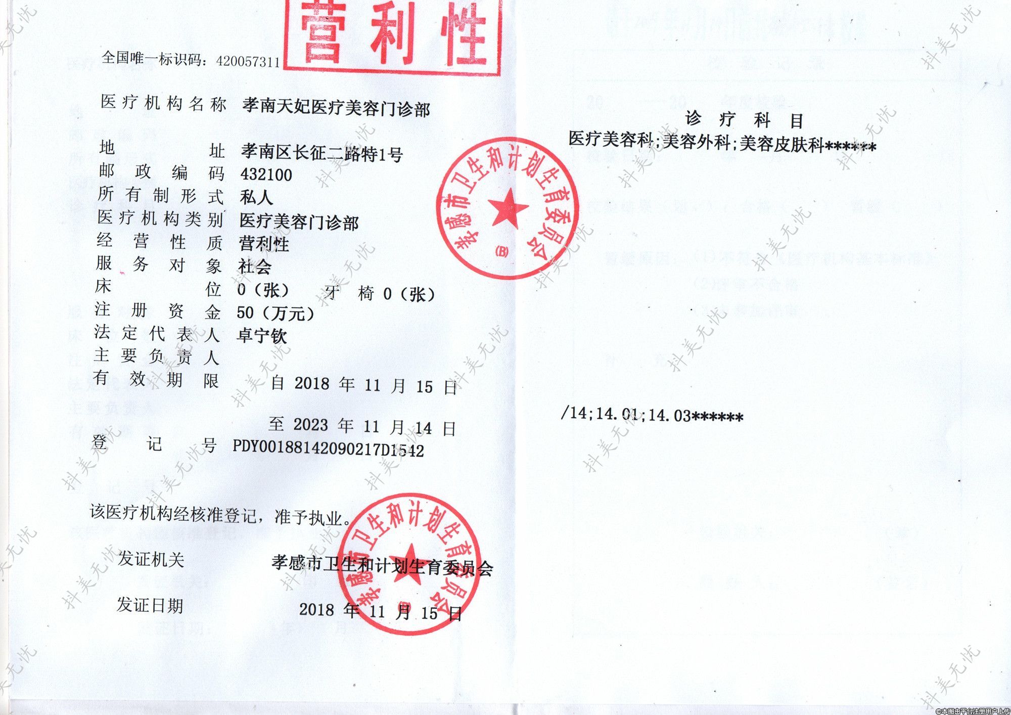 醫(yī)療機構名稱:孝感天妃醫(yī)療美容門診部
