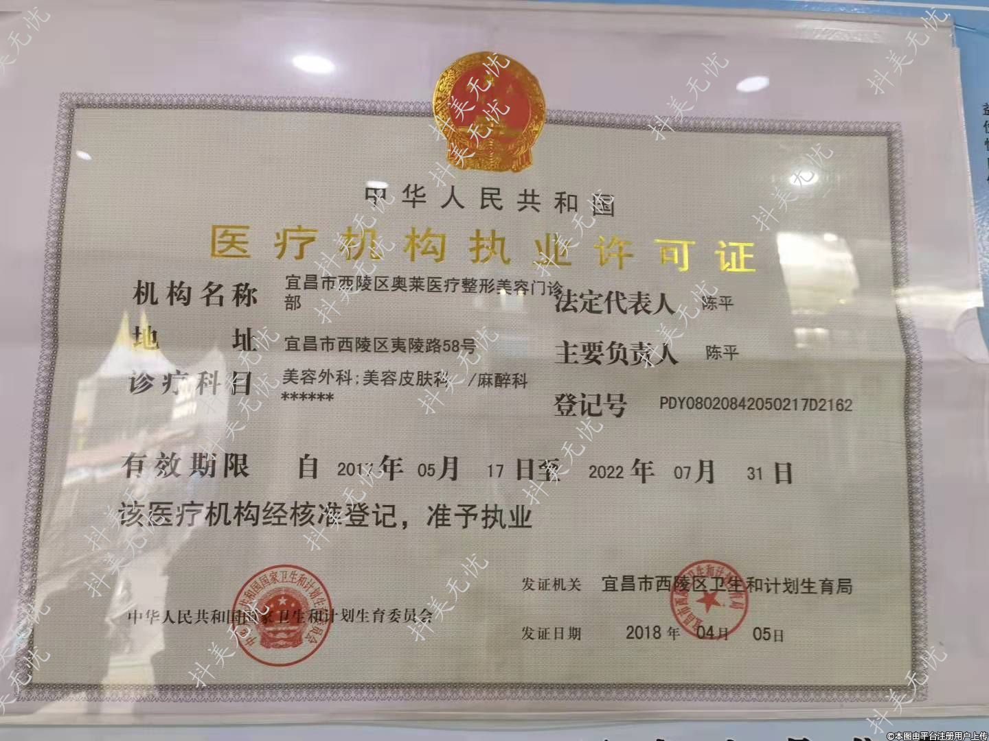 醫(yī)療機構名稱:宜昌市西陵區(qū)奧萊醫(yī)療美容門診部