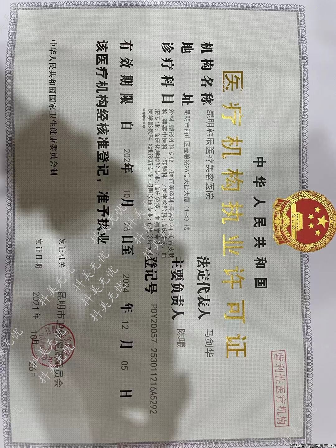發(fā)證機(jī)關(guān):昆明市衛(wèi)生健康委員會