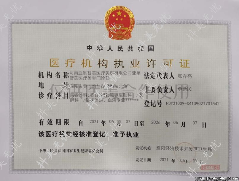 機(jī)構(gòu)名稱:河南亞星智美醫(yī)療美容有限公司亞星智美醫(yī)療美容門診部